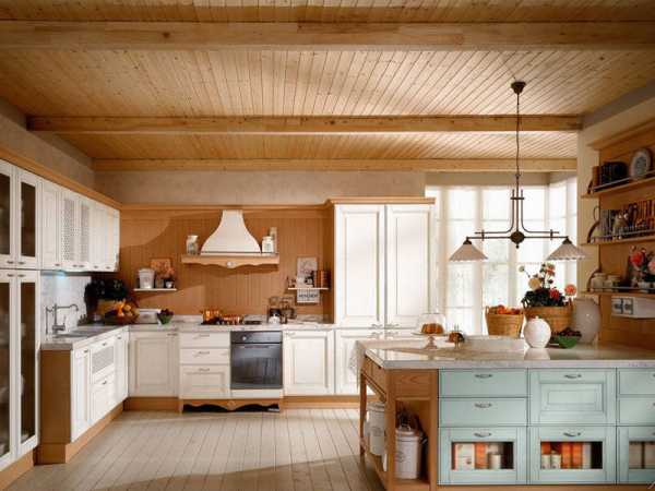 Однако иногда встречаются и противоположные ситуации, когда можно остановиться на косметическом ремонте в этом стиле, но по приемлемой цене. Отталкиваясь от последнего, для отделки стен подберите светлые обои с приятной фактурой. Фартук может быть сделан из пластика под дерево, мрамор или гранит. А для потолка и пола можно подобрать такие не дорогие материалы, как побелка и линолеум.
