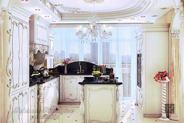 Классический гарнитур будет выигрышно смотреться в кухнях-гостинных. В этом случае важно, чтобы элементы дизайна кухни и гостиной в стиле классика были общими для них. Кухонный гарнитур и гарнитур в гостиной должны быть сделаны в одном стиле и иметь одинаковые декоративные элементы и цветовое решение.