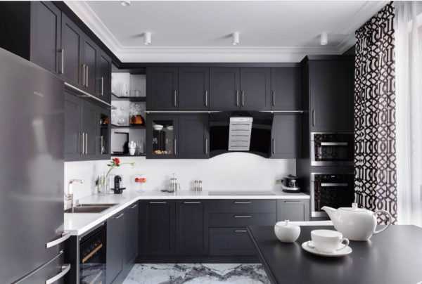 Последней ультрамодной тенденцией является использование в гарнитурах черных фасадов.