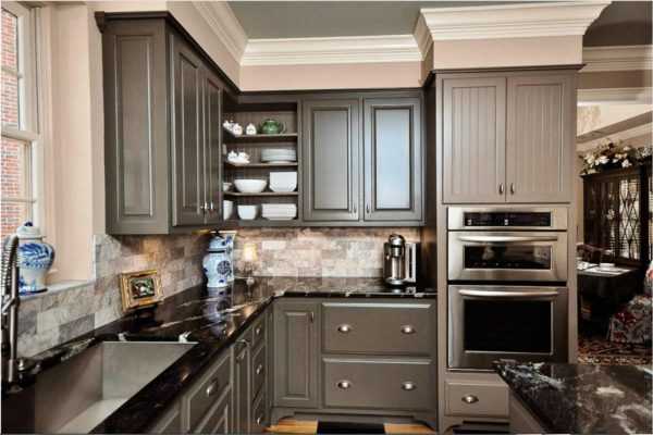 В таком дизайне чаще всего используют оттенки коричневого, серого и синего цветов. Черный цвет допустим только при сочетании с другими, чтобы интерьер не получился слишком темным. Темные тона смотрятся роскошно и благородно, так что их без раздумий можно использовать в обустройстве кухни в классическом стиле.