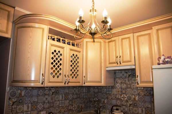 И напоследок, еще об одном важном элементе – освещение кухни. Наличие большого количества естественного света будет поддерживать кухню в ее естественной роскоши цвета, а в вечернее время с освещением и тематическим декором прекрасно поможет красивый светильник или люстра под классику.