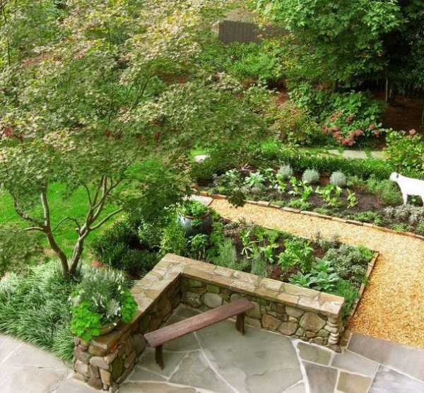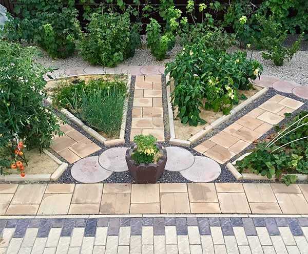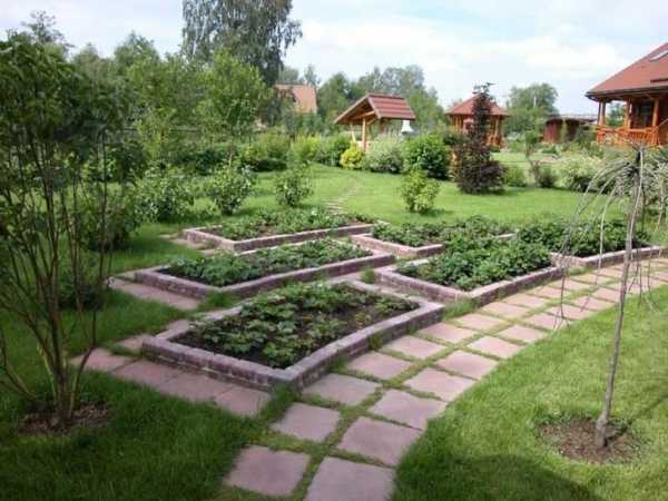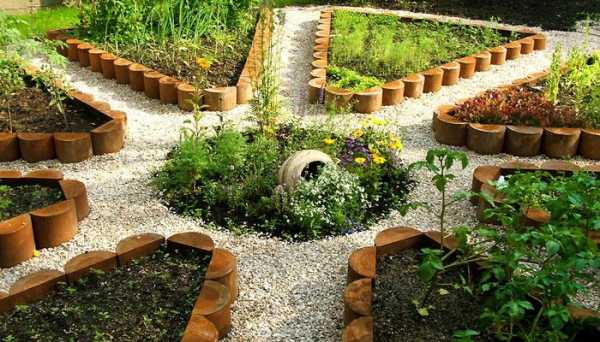Ландшафтный дизайн огорода с клумбами из овощей и трав
