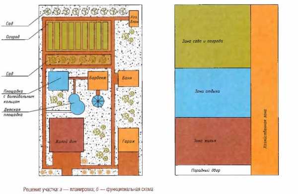 - Разделение участка на зоны. Обдумывая еще на этапе проектирования, как обустроить огородный участок, необходимо определить место расположения всех будущих зон: фронтальной, хозяйственной и зоны отдыха.