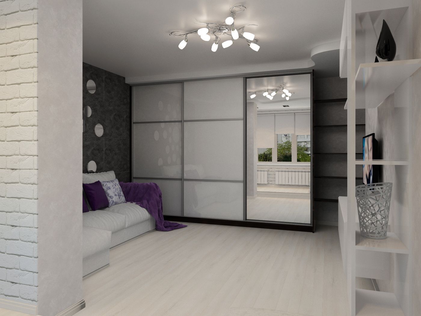 Проектирование начали с решения заменить радиаторы отопления на более усовершенствованные модели. Предусмотрели замену окон на балконе и дверного блока, утепление нежилого помещения. За счет перепланировки изменили конфигурацию санузла, чуть сдвинули дверной проем между коридором и кухней. После внесения конструктивных изменений приступили к формированию функционала. От гостиной отказались в пользу полноценной спальни для заказчицы. Особое внимание уделили детской, выполнив ее с учетом будущего школьного возраста дочери хозяйки квартиры. Интерьер выполнили в светлых тонах, отдав стилистическое предпочтение неоклассике.
