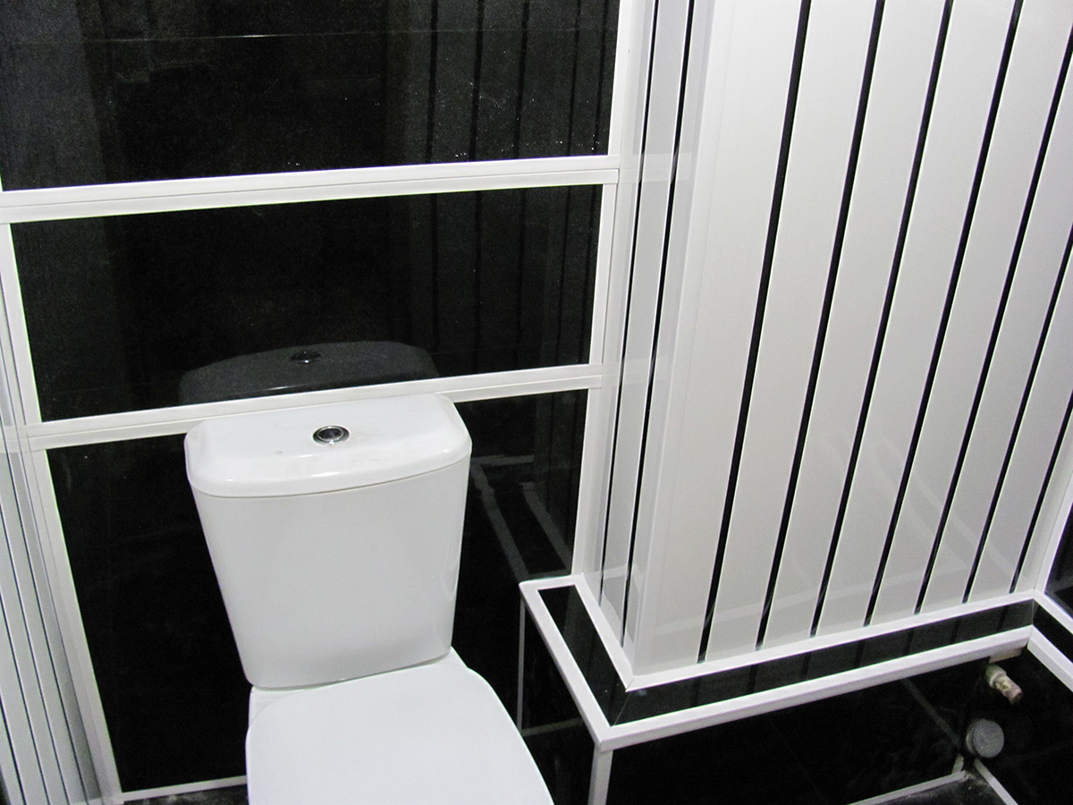 Пластиковые панели ни в чем не уступают кафельной плитке. Бесспорные плюсы материала — цена и отличная звукоизоляция.