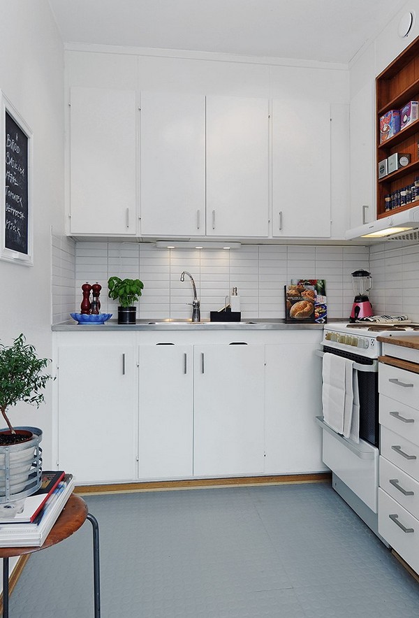 Как правило, кухни в однокомнатных квартирах совсем маленькие. Но даже три квадратных метров можно использовать с умом! Расположите кухонный гарнитур углом, поэкспериментируйте с формой столешницы. Подоконник можно задействовать как дополнительную рабочую зону или стол для обеда. Кстати, сам стол может быть узкой барной стойкой или откидным столиком, закрепленным на стене. Как в поезде, помните? Почему нет?