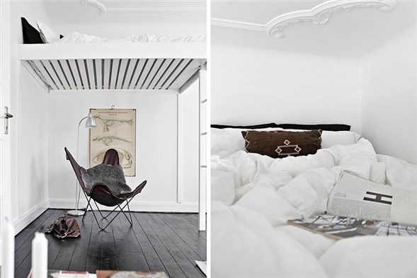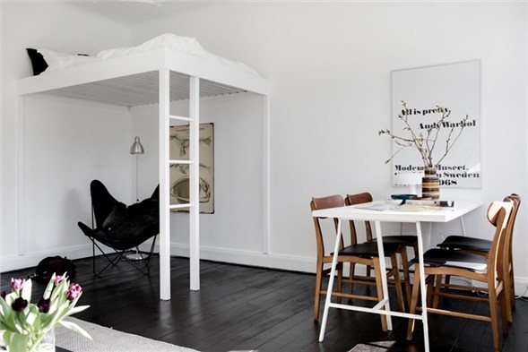 | Высокие потолки | Если потолки в квартире высокие, можно установить кровать над полом. Она называется кровать-чердак. Основание может быть отличным шкафом. Таким образом, соединяются сразу 2 мебельных элемента. |
