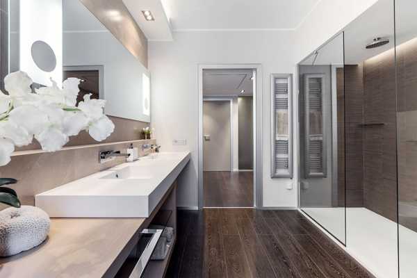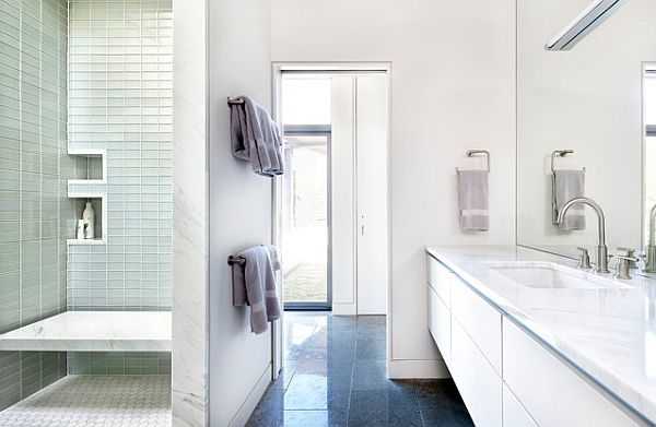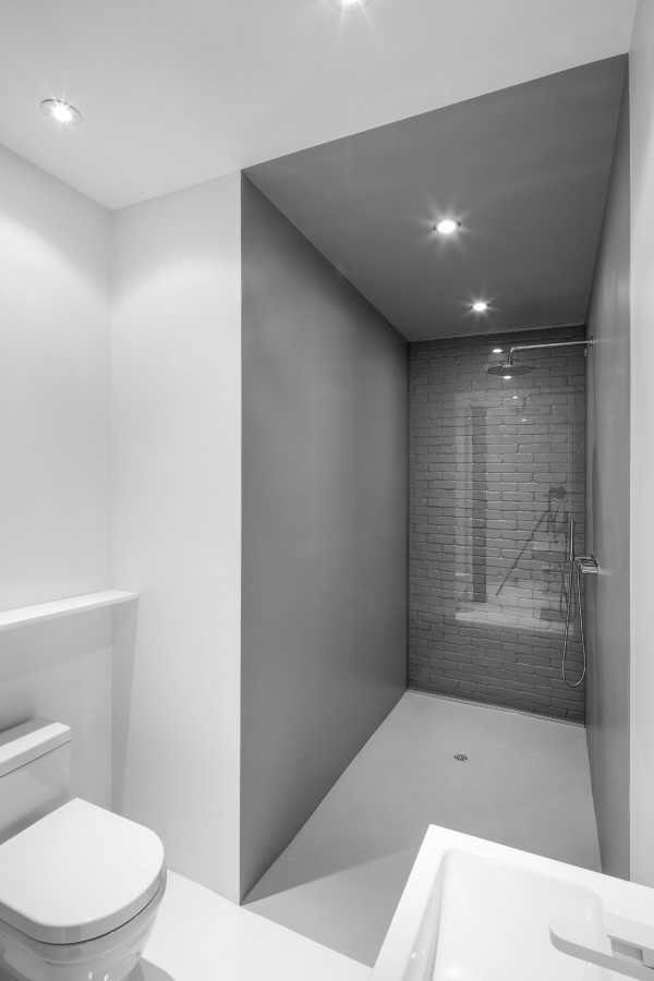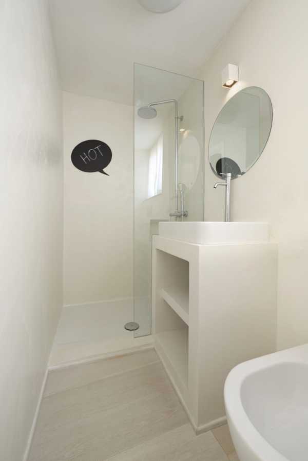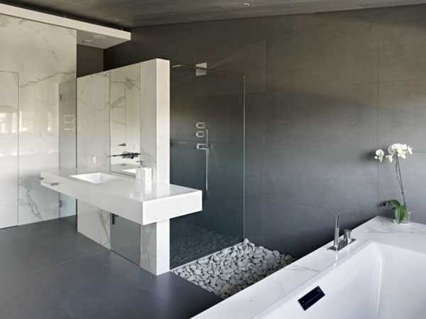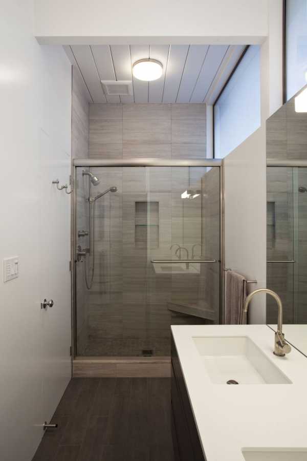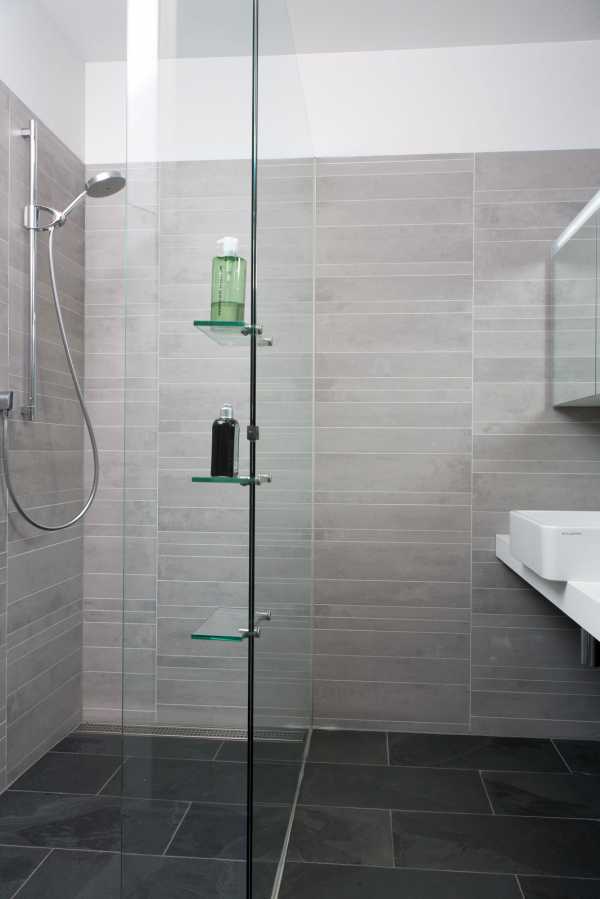 Минималистский дизайн ванной комнаты с душевой кабиной