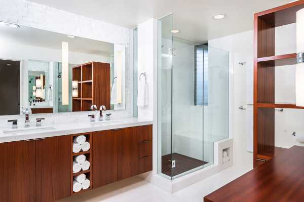 Современная ванная комната должна быть дополнена необходимым стильным оборудованием. Прогулка в душ с бескаркасной стеклянной душевой перегородкой, является последним прикосновением моды, не хватающей вашей ванне. Если вы планируете перепланировку в ванной, подумайте о том, чтобы установить душевую кабину со стеклянной перегородкой. С одной стороны, этот вариант планировки передает ощущение безмятежности и неприкосновенности частной жизни. С другой, он излучает роскошь и показывает ваш вкус на современные модные тенденции. Разнообразие идей для душа позволит выбрать индивидуальный дизайн вашей ванной комнаты и добавит ей особый характер.