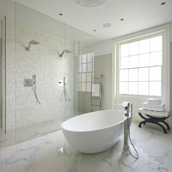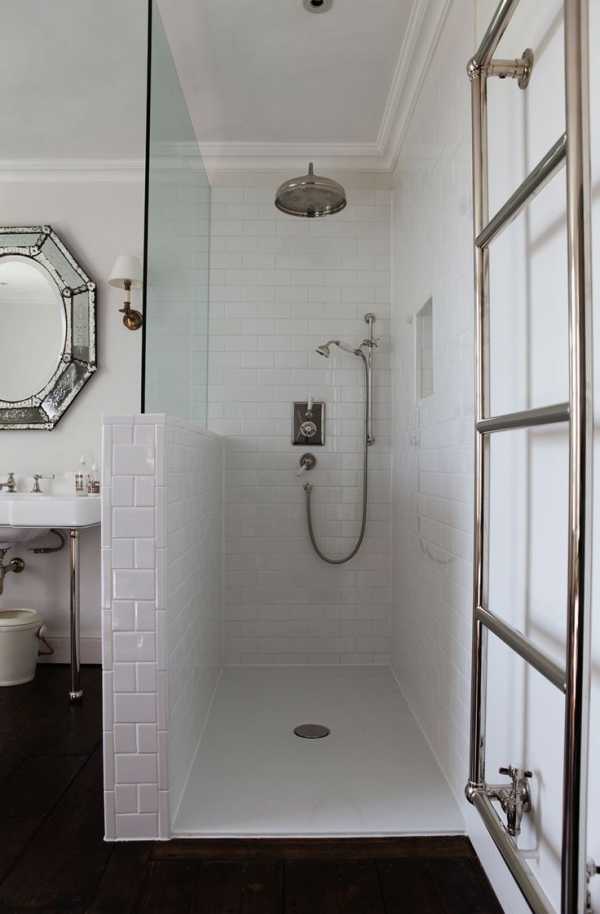 4) И наконец, помните, что всегда можно выбрать другой вариант, или что то среднее на пути к желаемому результату. Например, стеклянные панели без оправы, могут обеспечить практически тот – же эффект. Но в тоже время вы будете иметь некий барьер для защиты комнаты от брызг.
