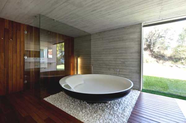 При наличии санузла большой площади рекомендуется зонирование, отделение душевой зоны от туалета и зоны стирки, если стиральная машинка находится в этом помещении. Перегородка, отделяющая душевую кабину или ванну, может быть любой формы, прямая, с одним изгибом, изогнутая в форме волны. По заверению психологов, округлые формы успокаивают, если добавить к этому расслабляющую ванну, то эффект от процедуры будет двойным.