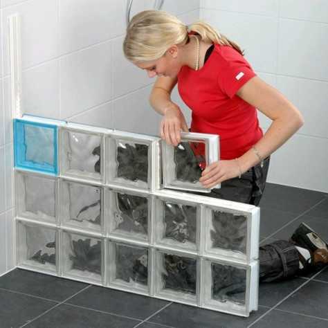 Доверить установку перегородки из стеклоблоков лучше профессионалам, но вполне возможно сделать это собственноручно. Необходимо рассчитать размер конструкции и учесть, что большая стена (более 15 м²) из блоков потребует наличие каркаса. Такой каркас крепится к двум-трем устойчивым поверхностям. Местами для крепления несущей рамы может стать пол, потолок и стена.