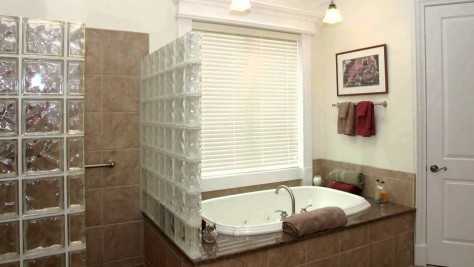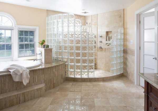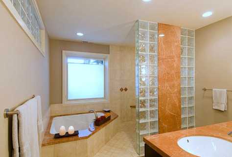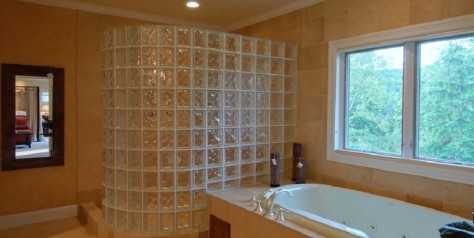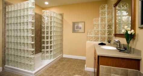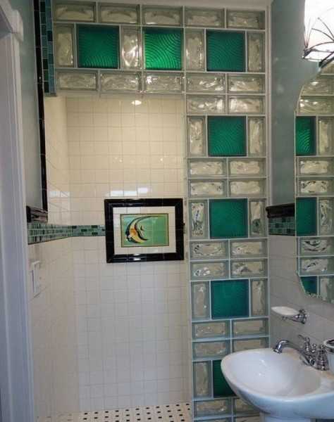 Стеклоблоки в интерьере ванной комнаты. Фото