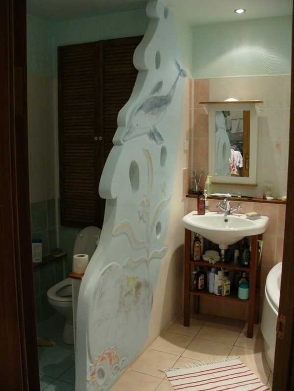 Практичная и легкая перегородка для ванной из гипсокартона станет отличным дополнением дизайнерского решения и будет выполнять больше декоративную функцию, разделяя пространство помещения и украшая его.