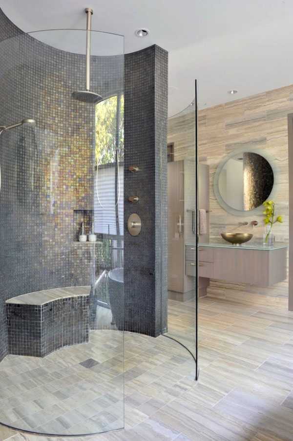 Тем, кто постоянно хочет вырваться их рамок, и не любит ограничивать свою свободу – очень понравится идея оформления душевой кабины без дверей и шторок. На первый взгляд это может показаться слишком неприличным, но побывав там хоть один раз, вы никогда не вернетесь в замкнутое пространство.
