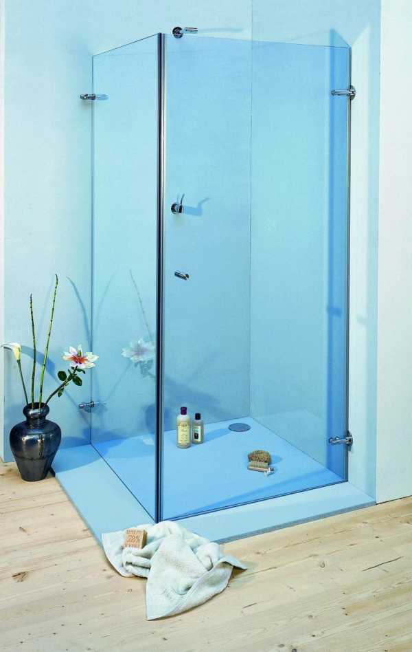 Стекло абсолютно не боится воды, пропускает свет, смотрится легко и изящно, поэтому идеально подходит для душевых ограждений. Перегородку лучше изготовить из каленого стекла, так как оно прочнее и безопаснее.