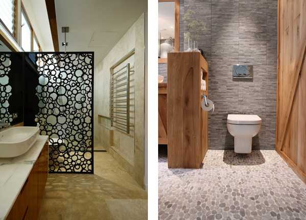 Декоративные перегородки используют для отделения туалетной зоны от остального пространства ванной комнаты. Независимо от того будут на перегородку попадать брызги воды или нет, она должна быть устойчива к воздействию влаги и образованию плесени, как правило такие свойства придают различные финишные покрытия: эмали, лаки, пропитки.