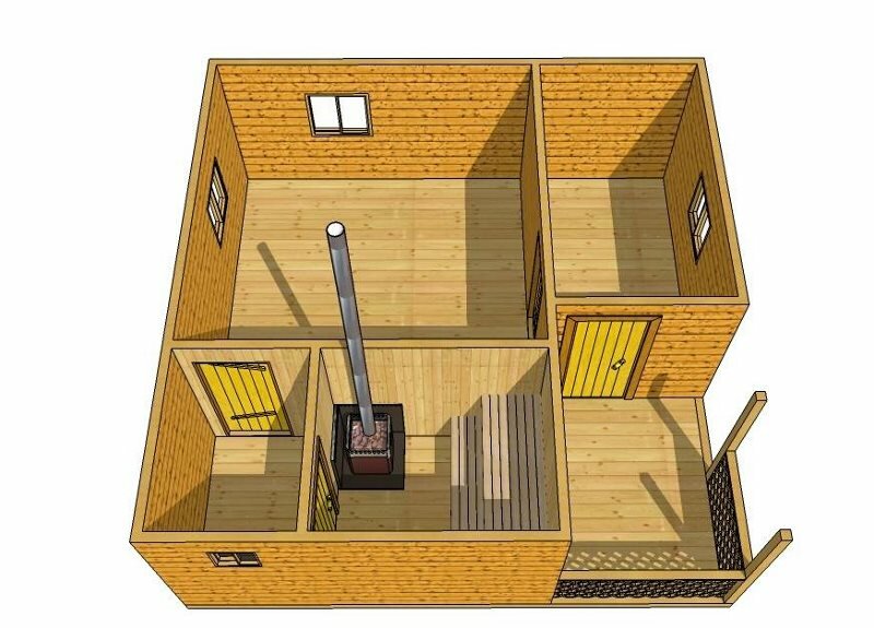 Двухкомнатный домик для сада или огорода. В общей комнате будет удобно отдыхать в полуденный зной. А маленькую комнату можно оборудовать в кладовую со стеллажами.