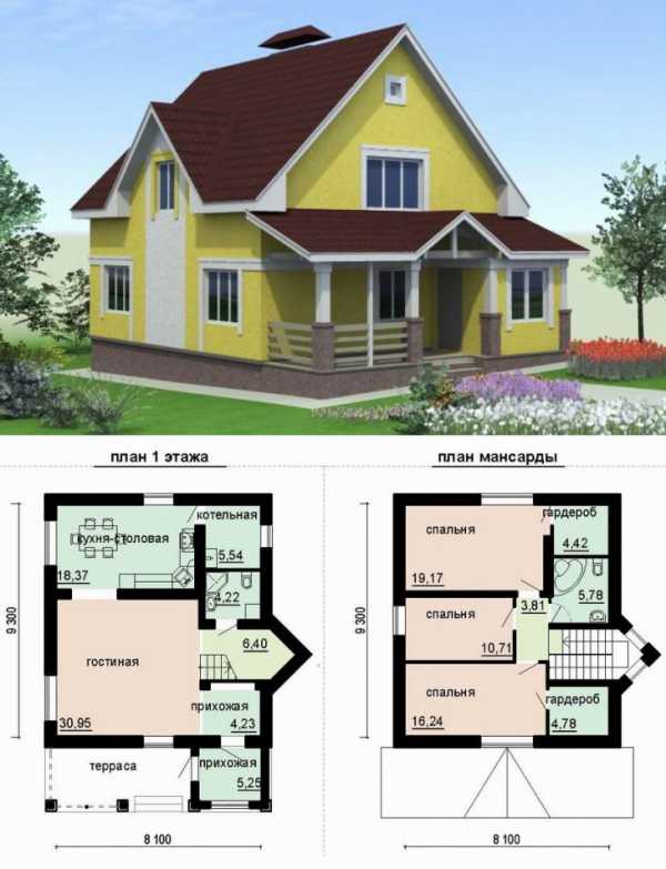 Дом 8 на 8 с мансардой – одно из оптимальных и недорогих решений, позволяющее расширить жилую площадь. Если утеплить кровлю и правильно отделать чердачное помещение, его можно использовать как жилую комнату круглый год. Решение обойдется заметно дешевле постройки 2-этажного дома.