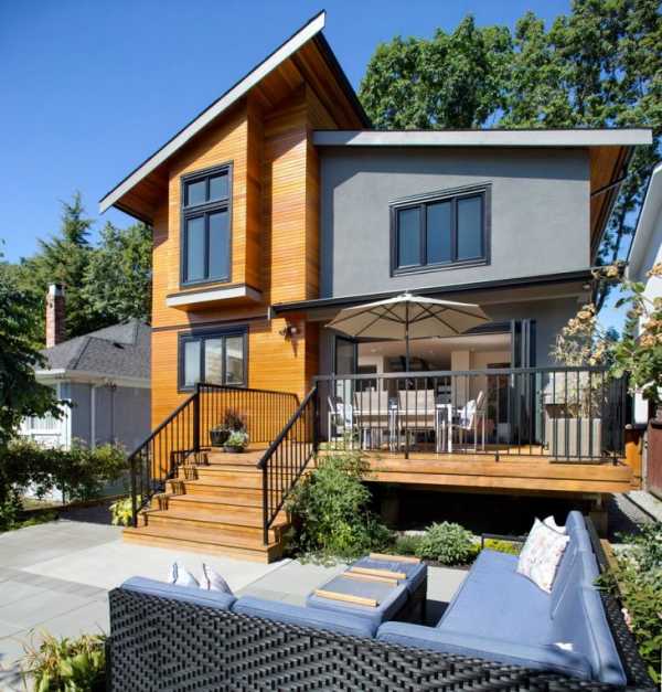 - Крыльцо. Удобный подъем в дом ― необходим. Современное крыльцо может выглядеть совершенным произведением искусства. Оно может украшать парадный вход или быть боковым для входа в дом, если строение предназначено для двух семей.