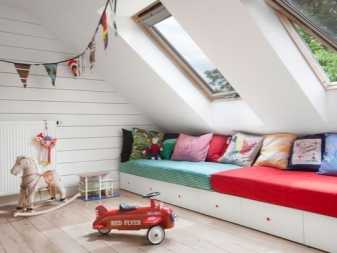- На верхнем этаже рекомендовано устроить детские комнаты из-за большого количества дневного света, попадающего в помещение. Это почти на 40% больше в сравнении с другими комнатами, даже с большими окнами.