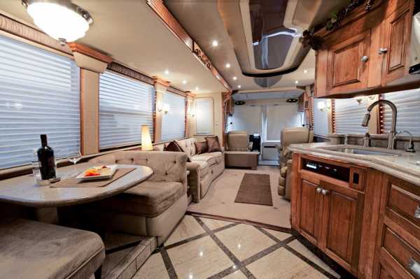 Его преимущество — габариты, поэтому такой автодом можно поделить на несколько жилых зон: рабочий кабинет, кухня, туалет, ванная, спальня, гостиная и даже гараж.