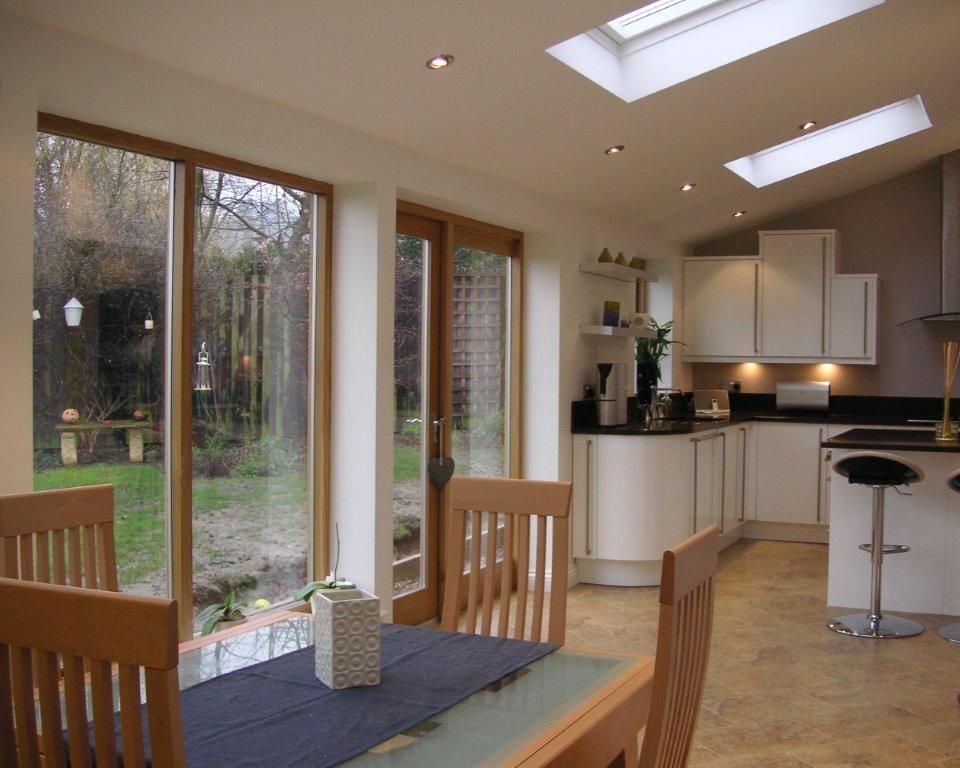 Если пристройка угловая и огибает дом по периметру, попробуйте сделать два или три выхода из кухни.