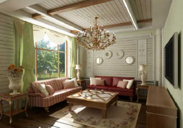 Этот стиль позволит сэкономить на многом. Например, здесь допускается не отделывать специально потолок. Разные открытые балки и перемычки только придадут шарм обстановке. Их можно разве что покрыть лаком. Роль древесины в оформлении комнат особенно велика потому, что частный дом нередко находится в непосредственной близости к природе. Приветствуются и другие натуральные материалы. В отделке мебели, скажем, часто используется мех, кожа или шерсть.