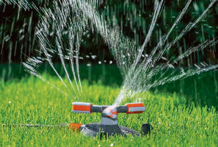 Несколько круговых дождевателей GARDENA Comfort Vario можно соединить в ряд, чтобы целенаправленно орошать большие площади.