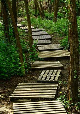 При желании можно покреативить и изготовить из паллет садовую дорожку…