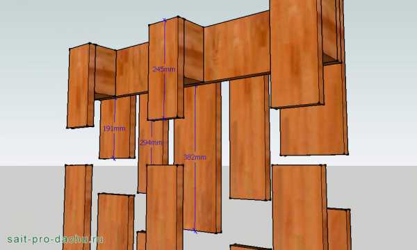- Установите заднюю и боковую стенки, оставив расстояние 2 – 3 см между рейками.