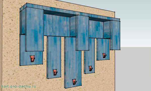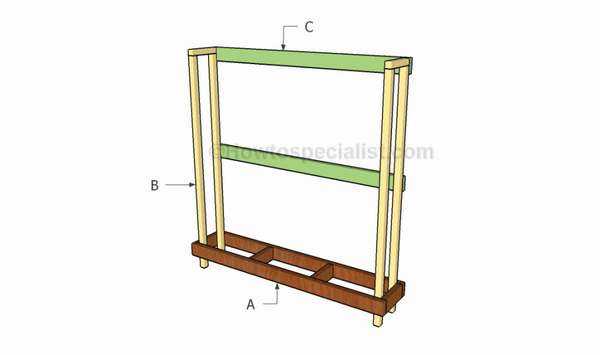 После того, как стойки приготовлены, остается смонтировать поддоны. К примеру, это можно сделать так, как показано на фото ниже. Паллеты надевают на стойки, к ним и крепят длинными саморезами.