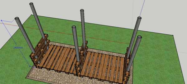 Сложнее будет, если изначально выбран деревянный брус. Тогда вы сможете только наметить под опоры места. После чего придется разобрать конструкцию, закопать столбы, и лишь потом собрать все, как было.