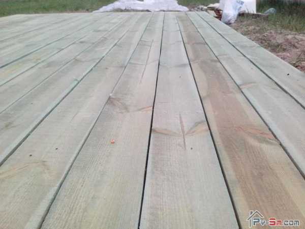 - Брус изолируем рубероидом, после чего начинаем монтаж настила из досок.