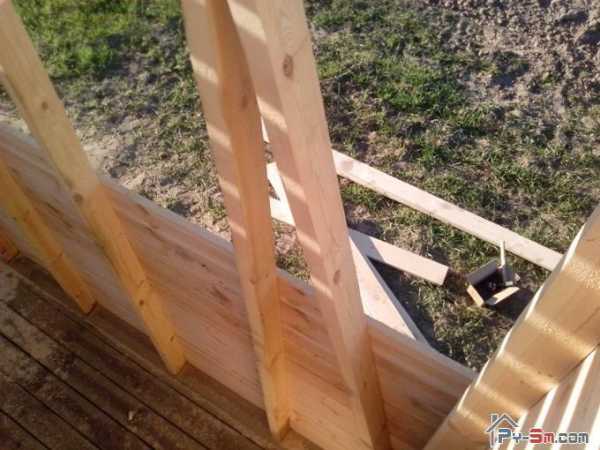 Далее монтируется стропильная система односкатной крыши. Можно делать и двускатную конструкцию. Однако этот тип монтажа является сложнее, требует больше материалов. Козырек должен быть достаточно большим, чтобы вода во время дождя не попадала внутрь.