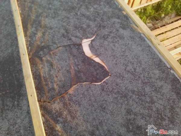 Причиной всему оказался рубероид плохого качества. Впредь не рекомендую делать кровлю из рубероида на бумажной основе. Лучше воспользоваться еврорубероидом толщиной 3-4 мм, который прослужит не один год.