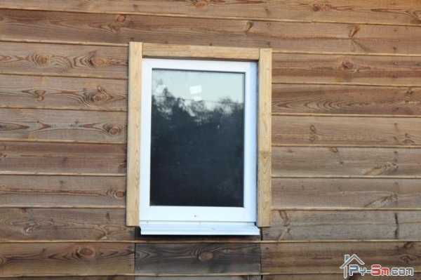 Снаружи проем оформил наличником и установил оцинкованный отлив. Внутри сделал деревянный подоконник и щели заполнил герметиком.