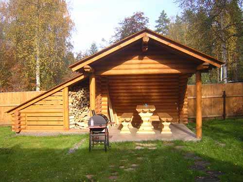 В том случае, если вы используете дрова не для отопления дома, а просто для барбекю, то можно сделать небольшой сарай, который расположит прямо на площадке для отдыха.