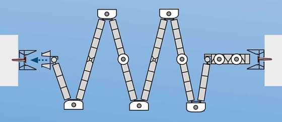От прочих моделей складных конструкций двери гармошка отличаются отсутствием цельного полотна, а механизм ее открывания отображен на фото ниже. Оно состоит из створок. Также это единственные двери из всех существующих, полотно которых может быть мягким. Материалы просто натягиваются на каркас из металлических трубок, которые соединены с механизмом.