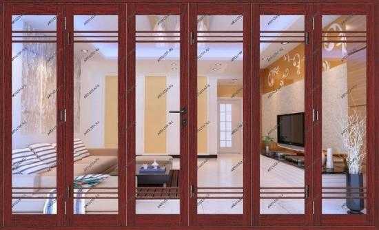 Конструкция створок дверей гармошка может быть филенчатой, щитовой, стеклянной, из пластикового либо алюминиевого профиля.