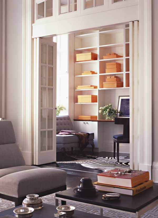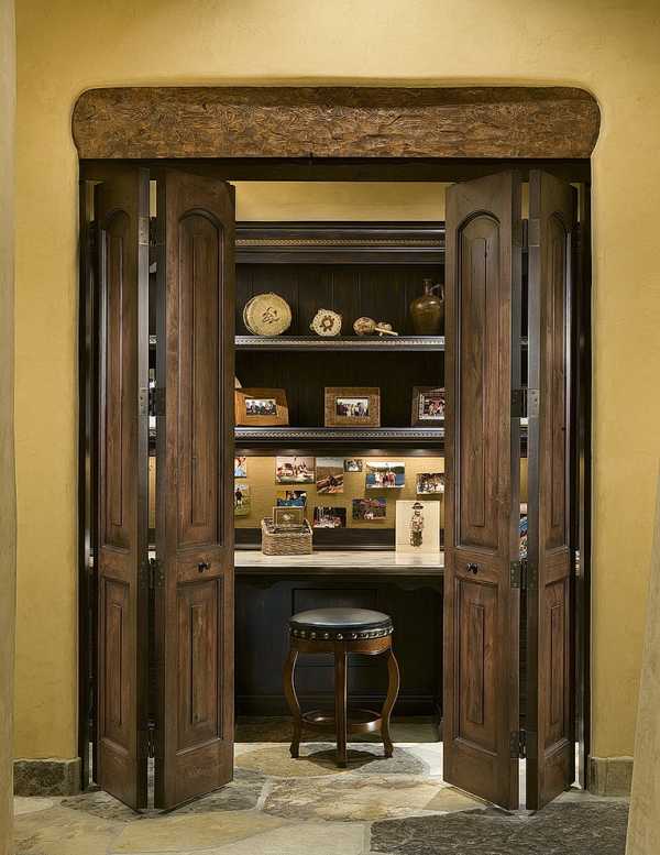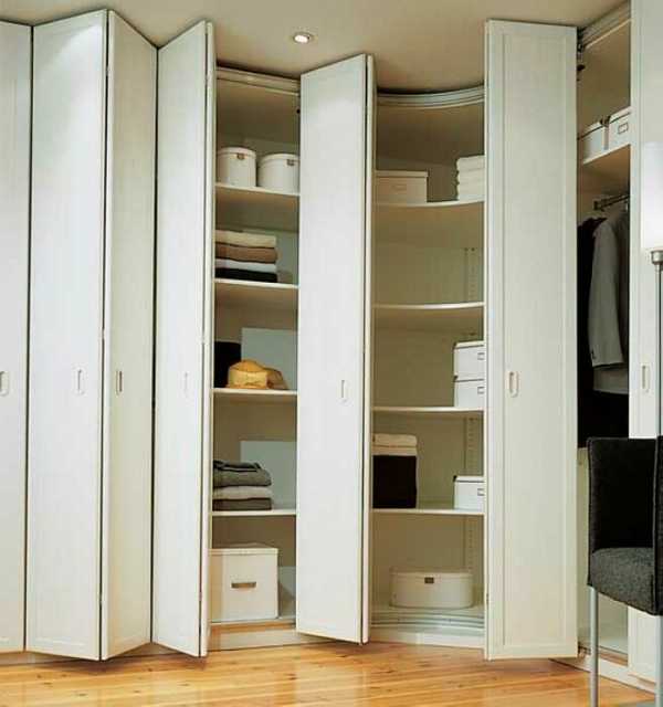 Такие модели отлично подойдут для кладовой, где хранятся зимние консервы, или в гардеробную, которая не всегда выглядит идеально. Из-за того, что складная дверь не обеспечивает идеального акустического комфорта и уединения, они редко используются для интимных интерьеров, таких как спальни, ванная комната или туалет. Однако они сочетают в себе преимущества навесных и раздвижных дверей и дают много других возможностей для организации даже самого маленького интерьера.