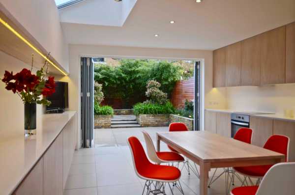 В современном ремонте дизайнеры часто предпочитают кухни, открытые для гостиной. Это решение имеет много плюсов и очень популярно, однако, кухня — рабочая зона, беспорядок на которой не хочется показывать гостям, которые неожиданно навестили вас. Дверь-гармошка прекрасно работает как разделитель пространства, который легким движением руки скрывает все неприглядное в комнате. Кроме того, кулинарные приключения не всегда увенчаны ароматами яблочного пирога. Складные двери остановят запах цветной капусты или другого характерного запаха в гостиную. При необходимости комнаты всегда можно объединить, получив открытое пространство.