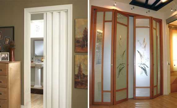 Дверь гармошка из разных материалов изготовления: фото в интерьере