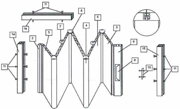 Наименование элементов конструкции двери гармошки