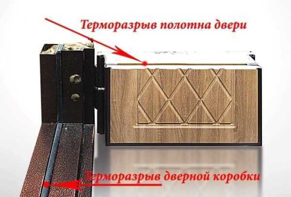 При установке обычной стальной двери тепло от помещения нагревает дверь, а затем передается уличному воздуху. Чтобы существенно замедлить этот процесс, была изобретена технология создания терморазрыва. Ее суть в укладке внутрь двери материалов, препятствующих нагреванию внешней части стальной конструкции.