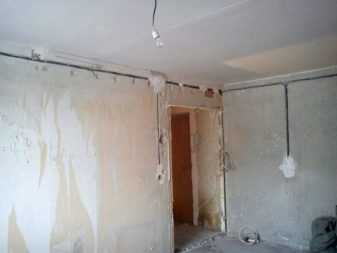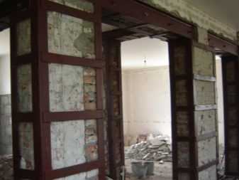 - Производится зачистка проема для удаления замазки, открывается конструкция стены.