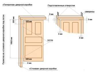 При отсутствии опыта установки дверей следует собирать их элементы под углом 45 градусов — это самое простое решение. Фрезой проделывают выемки для петель, край любой петли должен находиться не ближе 18 сантиметров к верхней и нижней границам полотна. Все поверхности следует тщательно зачистить и выровнять, только после отметки на приставленной двери делают углубления под шарниры.
