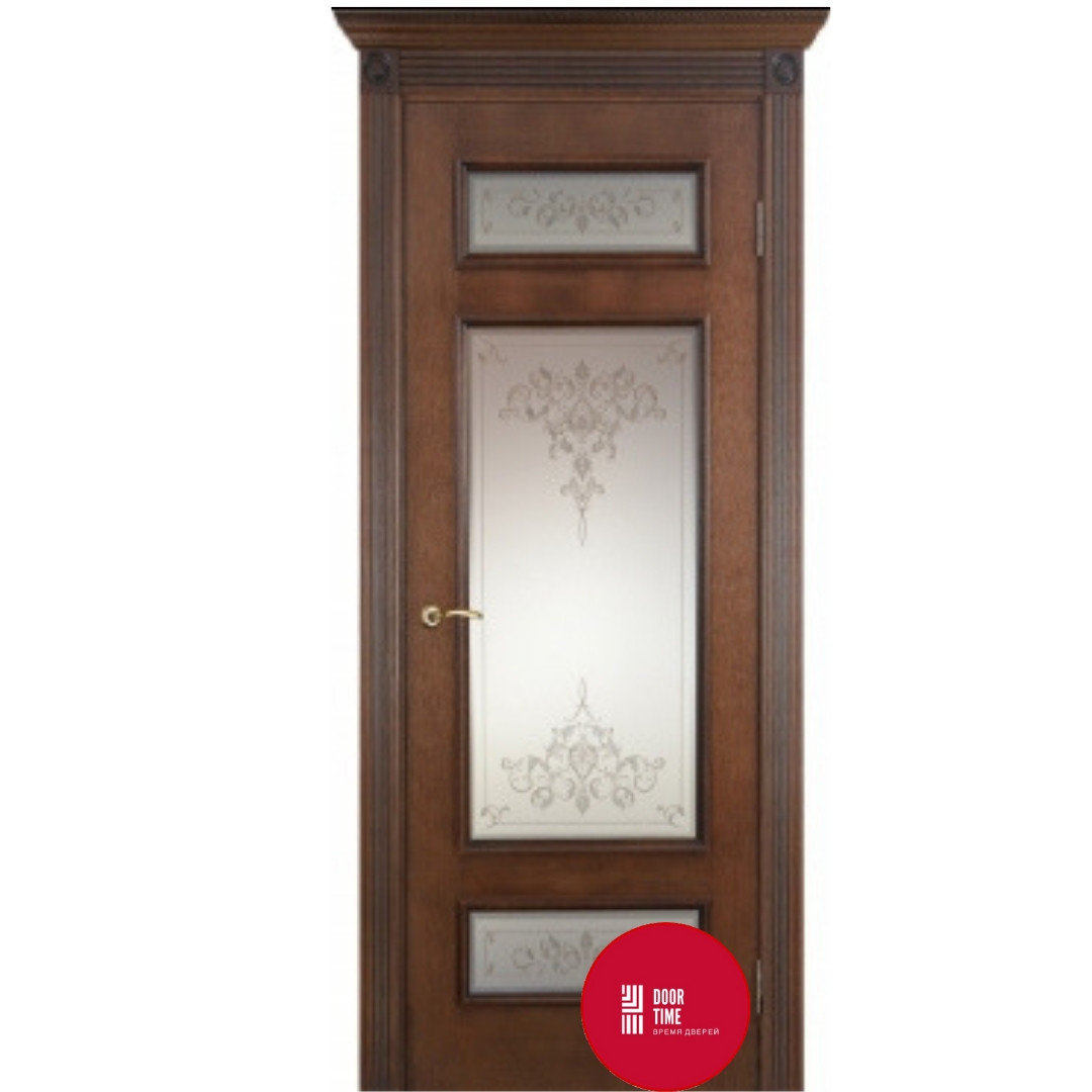 - Английский. Чаще всего в английском стиле применяют натуральные габаритные модели в темных тонах, декорированные капителями или широкими наличниками. С помощью стеклянных вставок можно немного облегчить данные массивные полотна и придать им грациозности.