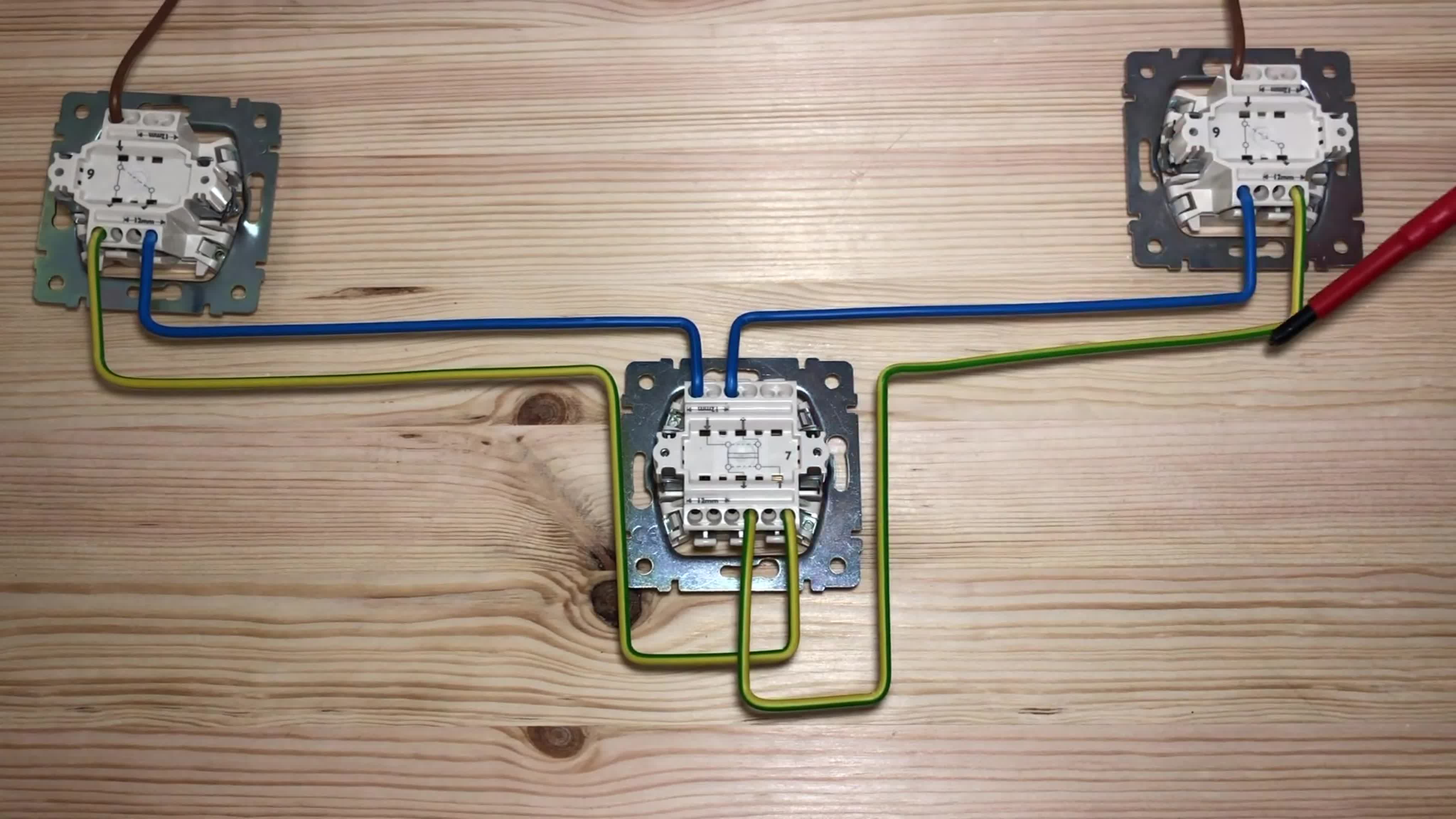 Пример: Три проходных выключателя для использования настенных бра подключенных в параллель, в проходной комнате.