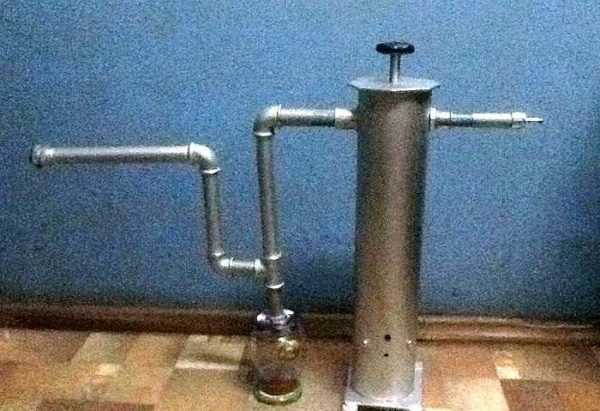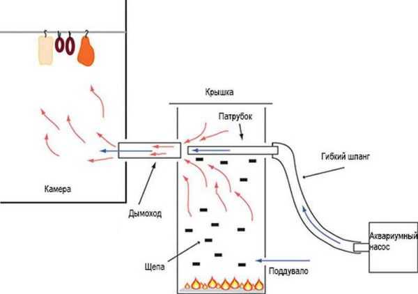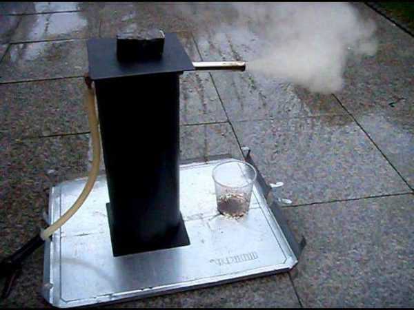 ΠΡΠ»ΠΈ Π²Π°ΠΌ Π½Π΅ Π½ΡΠΆΠ½Ρ ΠΏΡΠΎΠΈΠ·Π²ΠΎΠ΄ΡΡΠ²Π΅Π½Π½ΡΠ΅ ΠΎΠ±ΡΠ΅ΠΌΡ, ΠΌΠΎΠΆΠ½ΠΎ ΡΠ΄Π΅Π»Π°ΡΡ Π½Π΅Π±ΠΎΠ»ΡΡΠΎΠΉ ΠΈ Π½Π΅ΡΠ»ΠΎΠΆΠ½ΡΠΉ Π³Π΅Π½Π΅ΡΠ°ΡΠΎΡ Π΄ΡΠΌΠ° ΠΈΠ· ΠΌΠ΅ΡΠ°Π»Π»ΠΈΡΠ΅ΡΠΊΠΎΠΉ ΡΡΡΠ±Ρ. ΠΠ· ΡΡΡΠ±Ρ Π΄Π΅Π»Π°ΡΡ ΠΊΠΎΡΠΏΡΡ, Π² ΠΊΠΎΡΠΎΡΡΠΉ Π½Π°Π±ΠΈΠ²Π°ΡΡ ΠΎΠΏΠΈΠ»ΠΊΠΈ ΠΈΠ»ΠΈ ΡΡΡΡΠΆΠΊΡ. Π‘ΡΡΡΠΆΠΊΡ Π·Π°ΠΆΠΈΠ³Π°ΡΡ ΡΠ½ΠΈΠ·Ρ, Π΄ΡΠΌ ΠΏΠΎΠ΄Π½ΠΈΠΌΠ΅ΡΡΡ Π²Π²Π΅ΡΡ , Π³Π΄Π΅ ΠΎΡΠ²ΠΎΠ΄ΠΈΡΡΡ ΠΏΡΠΈ ΠΏΠΎΠΌΠΎΡΠΈ ΠΏΡΠΈΠ²Π°ΡΠ΅Π½Π½ΠΎΠΉ ΡΡΡΠ±Ρ Π² ΠΊΠΎΠΏΡΠΈΠ»ΡΠ½ΡΡ ΠΊΠ°ΠΌΠ΅ΡΡ. ΠΠ»Ρ ΡΡΠΈΠ»Π΅Π½ΠΈΡ ΡΡΠ³ΠΈ Π² Π²Π΅ΡΡ Π½Π΅ΠΉ ΡΠ°ΡΡΠΈ ΠΊΠΎΡΠΏΡΡΠ° ΠΏΠΎΠ΄ΠΊΠ»ΡΡΠ°Π΅ΡΡΡ ΠΌΠ°Π»ΠΎΠΌΠΎΡΠ½ΡΠΉ ΠΊΠΎΠΌΠΏΡΠ΅ΡΡΠΎΡ β ΠΏΡΠΎΠΈΠ·Π²ΠΎΠ΄ΠΈΡΠ΅Π»ΡΠ½ΠΎΡΡΡΡ Π½Π° 1,5-2 Π»ΠΈΡΡΠ°/ΠΌΠΈΠ½. Π’ΠΎ Π΅ΡΡΡ, ΠΌΠΎΠΆΠ½ΠΎ ΠΈΡΠΏΠΎΠ»ΡΠ·ΠΎΠ²Π°ΡΡ Π°ΠΊΠ²Π°ΡΠΈΡΠΌΠ½ΡΠΉ ΠΊΠΎΠΌΠΏΡΠ΅ΡΡΠΎΡ ΠΈΠ»ΠΈ Π°Π³ΡΠ΅Π³Π°Ρ ΠΎΡ ΡΡΠ°ΡΠΎΠ³ΠΎ Ρ ΠΎΠ»ΠΎΠ΄ΠΈΠ»ΡΠ½ΠΈΠΊΠ°. ΠΡΠ»ΠΈ Π΅ΡΡΡ Π²ΡΠ±ΠΎΡ, ΡΠΎ Π°ΠΊΠ²Π°ΡΠΈΡΠΌΠ½ΡΠΉ ΠΏΡΠ΅Π΄ΠΏΠΎΡΡΠΈΡΠ΅Π»ΡΠ½Π΅Π΅, ΡΠ°ΠΊ ΠΊΠ°ΠΊ ΠΈΠΌ ΠΌΠΎΠΆΠ½ΠΎ ΡΠ΅Π³ΡΠ»ΠΈΡΠΎΠ²Π°ΡΡ ΠΈΠ½ΡΠ΅Π½ΡΠΈΠ²Π½ΠΎΡΡΡ Π²ΡΡ ΠΎΠ΄Π° Π΄ΡΠΌΠ°.